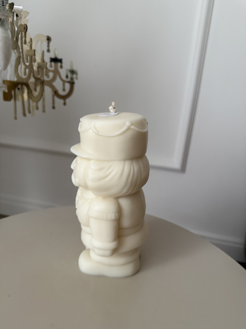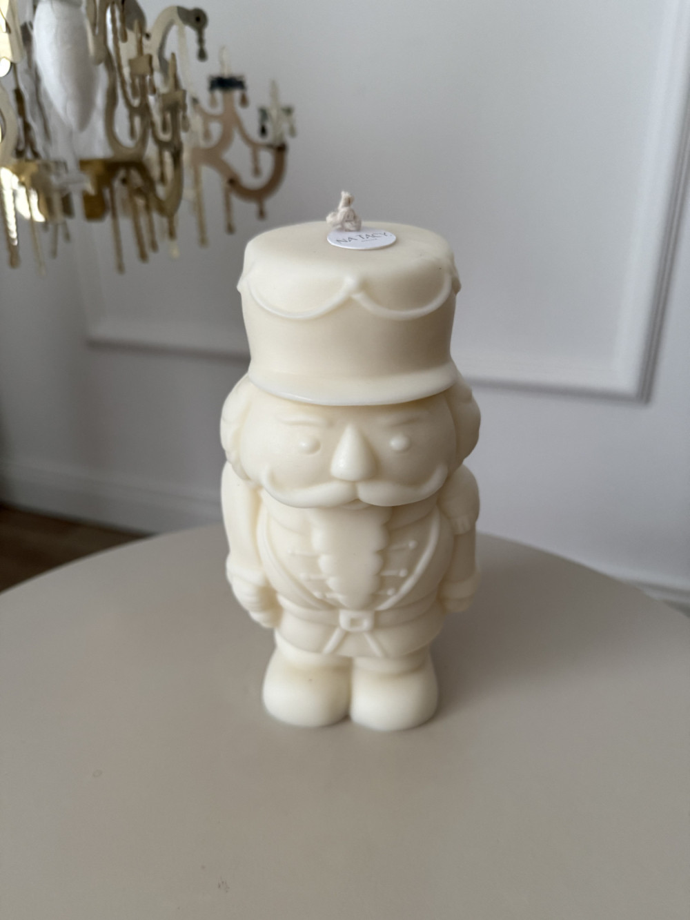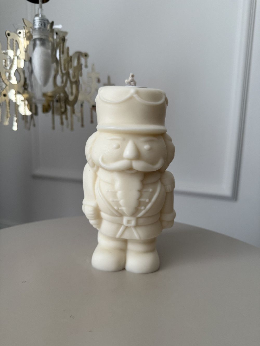 Wprowadź do swojego wnętrza nutę magii i elegancji dzięki naszej świecy w kształcie klasycznego Dziadka do orzechów.