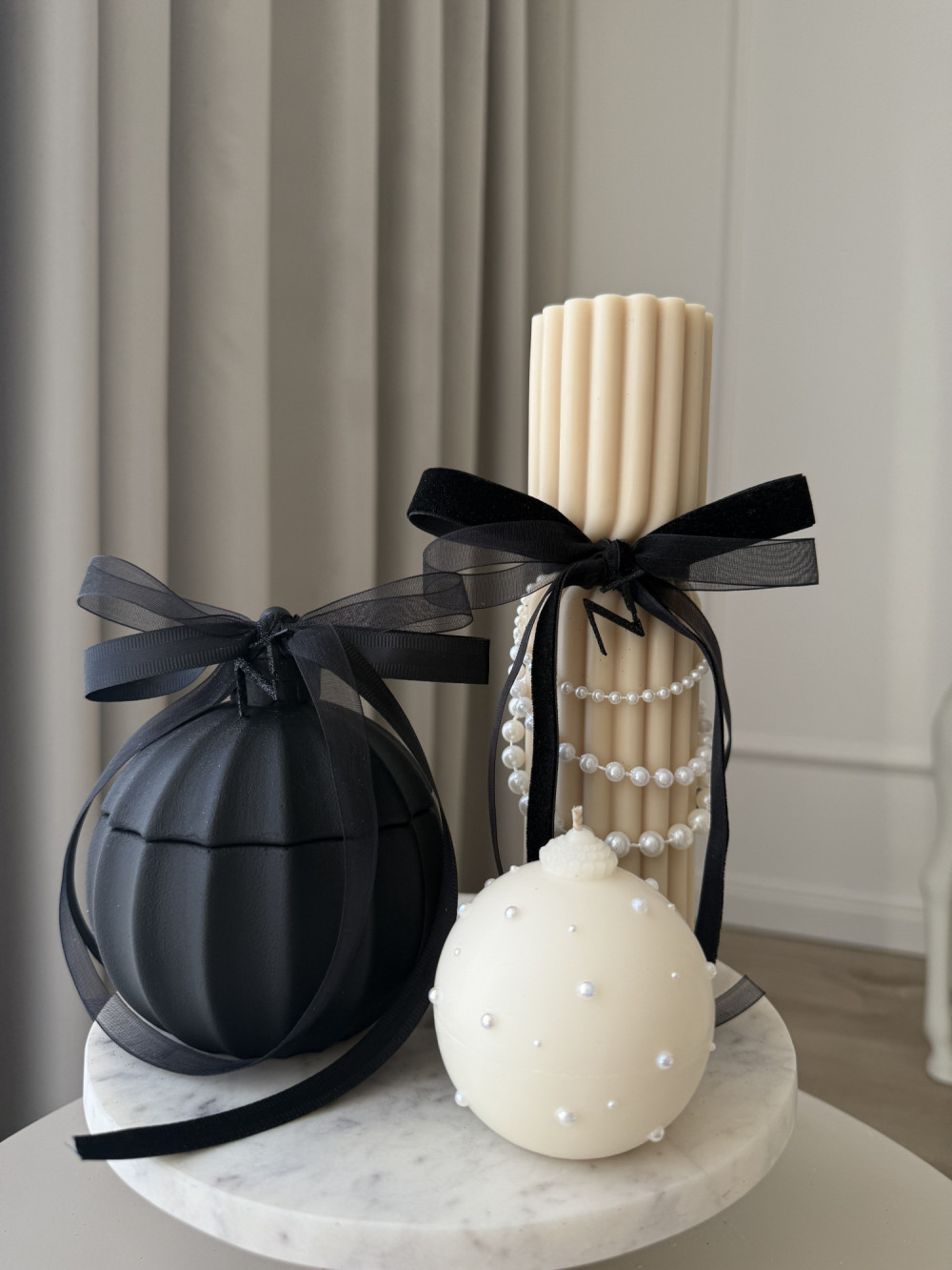 Poznaj zestaw ekskluzywnych świec La Nuit des Perles stworzony z myślą o wnętrzach, które kochają elegancję, subtelny minimalizm i perłowe wykończenia. To trio dekoracyjnych świec, w którym aksamitna czerń spotyka się z kremową klasyką, a biżuteryjne detale nadają każdemu elementowi wyjątkowy charakter.